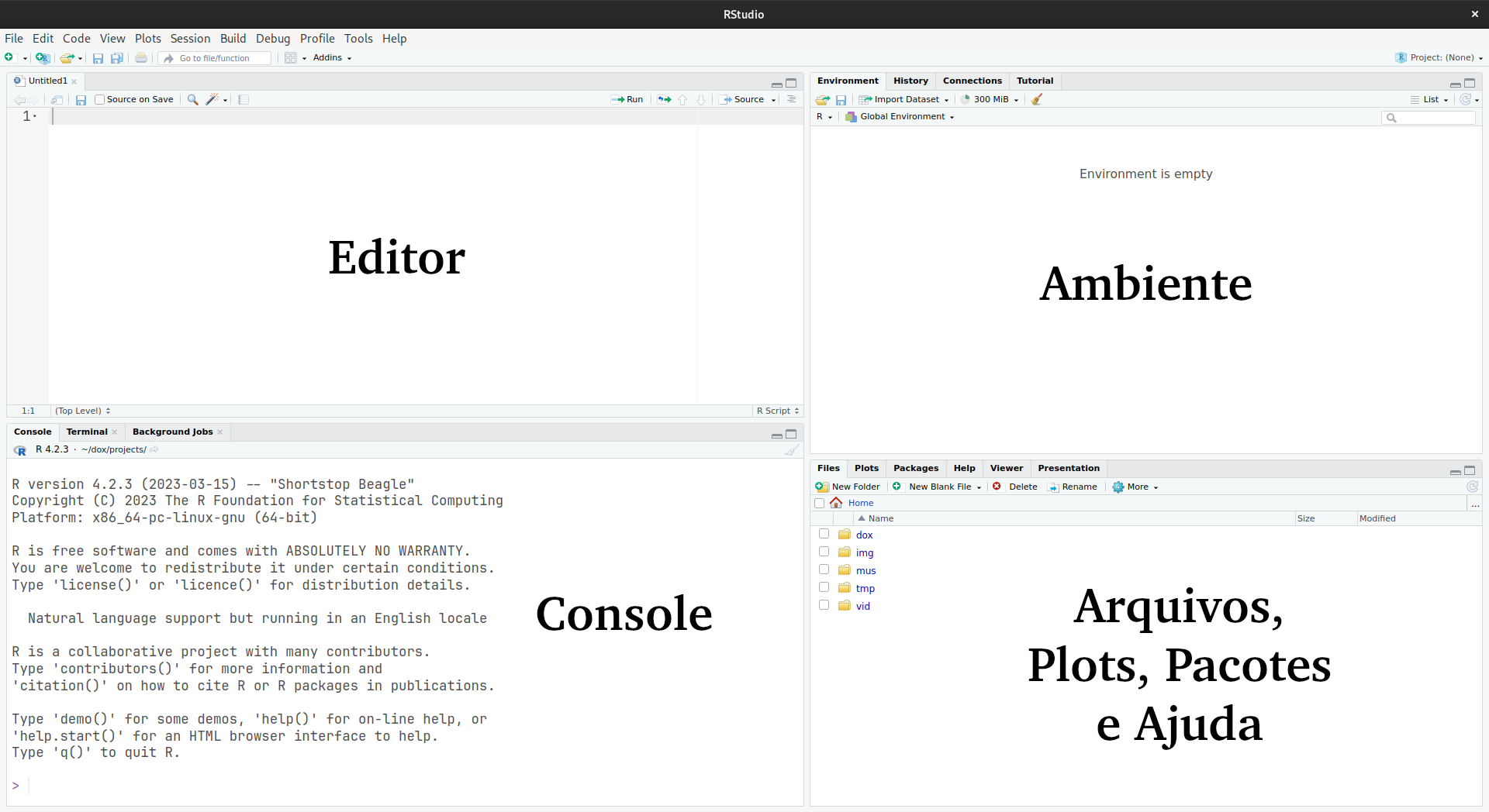 O RStudio é um ambiente de desenvolvimento integrado (IDE) para facilitar nossa vida.